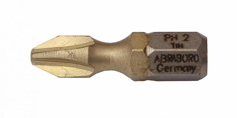 Csavarbehajtó hegy (bit) rövid (25 mm), 1/4 C 6,3 befogással, illetve hosszú méretben (50 mm-150 mm) 1/4 E 6,3 befogással DIN 3126 szerint gépi csarozókhoz és kézi működtetésű szerszámokhoz