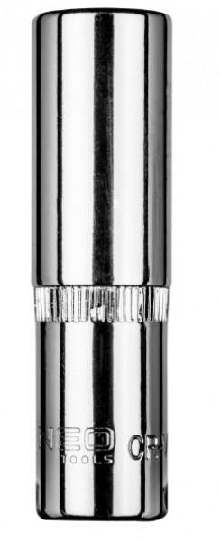 A NEO 3/8", 8 mm hosszú hatlapos dugókulcs sz ilárd króm-vanádium acélból készült. A recézett felület javítja a dugókulcs fogását. A szerszám minőségét a gyártó 25 éves garancia igazolja. Hatlapos dugókulcs szilárd hosszú 3/88 mmCrV acél