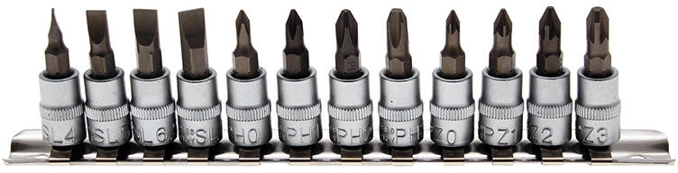 Angol nyelvű leírás (a magyar fordítást lásd lejjebb):knurledon socket railincludes the following tools:Bit-sockets, 6.3 mm (1/4) drive, drive slot SL 4 - 5.5 - 6.5 - 7 mmBit-sockets, 6.3 mm (1/4) drive, drive cross slot PH0 - PH1 - PH2 - PH3Bit-sockets, 6.3 mm (1/4) drive, drive cross slot PZ0 - PZ1 - PZ2 - PZ3Magyar fordítás (fordító automata segítségével):knurleda socket sínena k