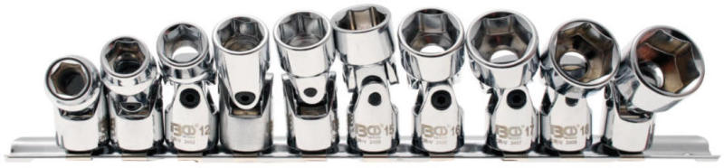 Angol nyelvű leírás (a magyar fordítást lásd lejjebb):single sizes available under BGS 2450-2459on socket railincludes the following tools:Universal joint socket set Pro Torque® hexagon, drive internal square 10 mm (3/8"): 10 - 11 - 12 - 13 - 14 - 15 - 16 - 17 - 18 - 19 mmMagyar fordítás (fordító automata segítségével):a BGS 2450-2459 alatt elérhető egyedi méreteka socket sínena