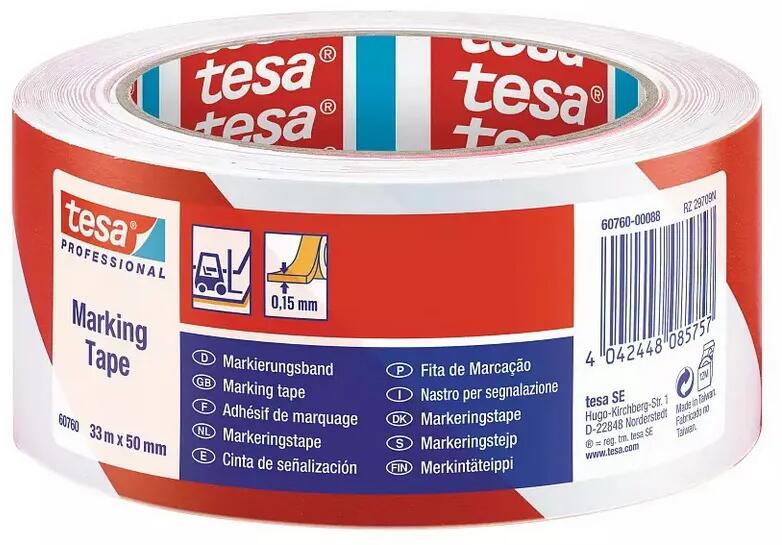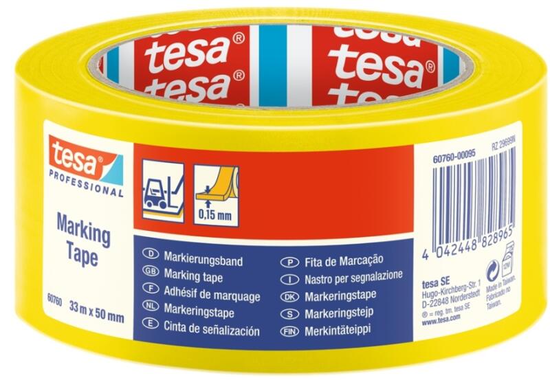 Tesa® Professional 60760 Floor Marking Tape öntapadó jelölőszalag 33 m hosszú, 50 mm széles Alkalmazás: - állandó padlójelölésekre, ill. mozgó és egy helyben álló objektumok jelölésére - munkaterületek kijelölésére, pl. javítóműhelyekben, raktárakban,