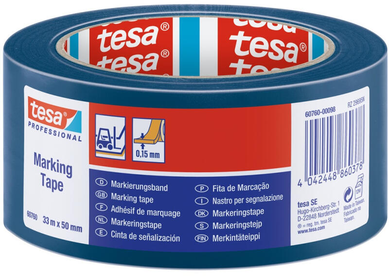 JELÖLŐSZALAG KÉK 50MMX33M TESA PVC padlójelölő ragasztószalag kaucsuk alapú ragasztóval. A ragasztószalag tökéletesen alkalmas ideiglenes és alacsony kockázatú figyelmeztető jelzések vagy veszélyzónák jelölésére és bármilyen mozgó vagy statikus tárgy megjelölésére. Katalóguskód: 34290