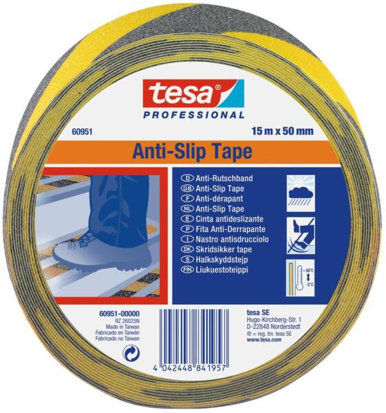 Ásványi részecskéket tartalmazó csúszásgátló ragasztószalag, amely flexibilis és vízzáró műanyag fóliára kell felvinni. Nagyon jól ellenáll a víz, az ultraibolya-sugárzás, az alkohol és az oldószerek hatásának. Egyszerűen fel kell ragasztani a lépcsőpihenőkre, rámpákra, emelőpódiumokra és a gépek melletti járófelületre. Ideális védelmet nyújt balesetek elk