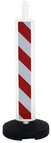 Jól látható oszlopok a nagyobb biztonság érdekében éjjel-nappal. Látható munkafelületek a fényvisszaverő rendszernek köszönhetően. Rendkívül robusztus talp teherrel (9 kg). 2 nyitott kampó a lánc rögzítéséhez.