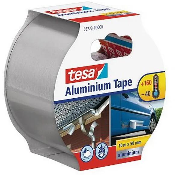 Tesa® alumíniumszalag 50 m hosszú, 50 mm széles, 30 my vastag A Tesa® aluminium szalag egy öntapadó bélésanyaggal ellátott vízvezeték-szerelő szalag, amely alkalmas bármilyen fémfelület, pl. fűtőberendezések vagy esőcsatornák gyors javításához. - Védel