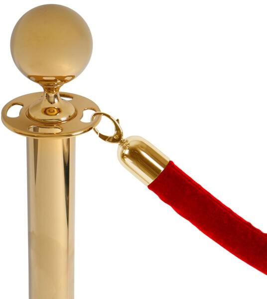 A sorompóhoz vezető kötél nagyszerű választás, ha elegánsan kell helyet foglalnia és biztosítania kell a nem kívánt emberek ellen. A kötél arany végei tökéletesen kiegészítik az aranyoszlopot, és kiválóan alkalmasak például múzeumokba, szállodákba vagy repülőterekre A kötél felszerelése nagyon egyszerű, mert minden oszlopon négy lyuk található a függesztéshez.