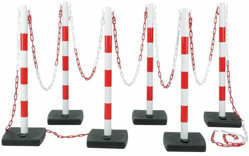Felső sapka két lánchoroggal. 6 oszlopból álló készlet 4 kg homok vagy kavics tárolására. UV-sugárzás ellen kezelt oszlopok, ideális beltéri és kültéri használatra. Minden oszlopon horgokkal ellátott sapka található a könnyű lánc rögzítéséhez.