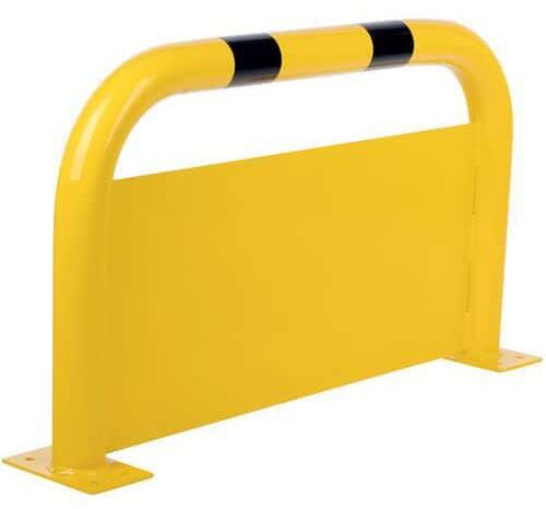 Robusztus acél védőkorlát berendezések vagy gépek anyagmozgató berendezések okozta sérülések elleni védelmére. Aláfutásgátló lemezzel, amely megakadályozza a kocsik ütközését a berendezéssel. Jó láthatóság a sárga-fekete kétszínű kivitelnek k??szönhetően. Kizárólag beltéri használatra.