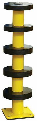 Ütésvédelem. Négy elasztomer gyűrű egy tömör kereten. Oszlop lengéscsillapítókkal. Tisztítható, nem tömődik. A padlóhoz rögzíthető, robusztus rögzítőlemez.