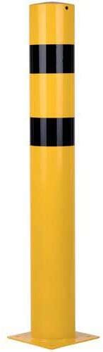 Robusztus acél terelőoszlop berendezések vagy gépek védelmére, például anyagmozgató berendezésekkel okozott sérülések ellen. Jó láthatóság a sárga-fekete kétszínű kivitelnek köszönhetően. Beltéri és kültéri használatra egyaránt alkalmas. Talplemez 4 db O 12,5 mm furattal.