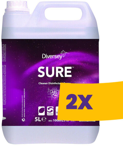 Használatra kész fertőtlenítő hatású tisztítószer, élelmiszerrel érintkező felületekhez, 100%-osan lebomló A SURE Cleaner Disinfectant Spray utántöltő az egyedi SURE termékkör tagja, mely 100%-osan lebomló*, növényi alapú összetétellel rendelkező professzionális tisztítószereket kínál minden napi tisztítási feladat elvégzésére. A SURE Cleaner Disinfectant Spray