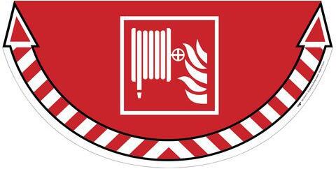 Tűzoltótömlő-tekercs elhelyezésére szolgáló matrica Nagy szilárdságú ragasztó, amely szilárdan tapad sík belső felületekhez (kivéve a szőnyegeket). Hőmérsékletállóság -20°C és +60°C között. Csúszásmentes szemcsés felület tükröződésmentes kezeléssel az optimális kezelés érdekében olvashatóság. Nem válik le, ha targoncával és raklapemelővel hajtják. A