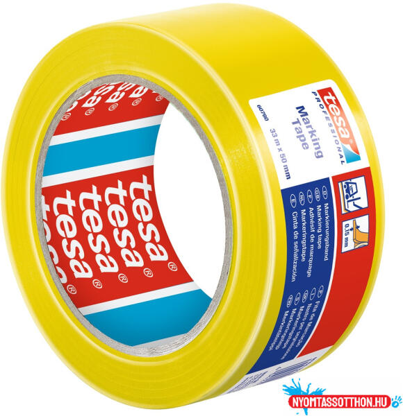 Jelölőszalag 50mmX33m Tesa sárga PVC padlójelölő ragasztószalag kaucsuk alapú ragasztóval. A ragasztószalag tökéletesen alkalmas ideiglenes és alacsony kockázatú figyelmeztető jelzések vagy veszélyzónák jelölésére és bármilyen mozgó vagy statikus tárgy megjelölésére.