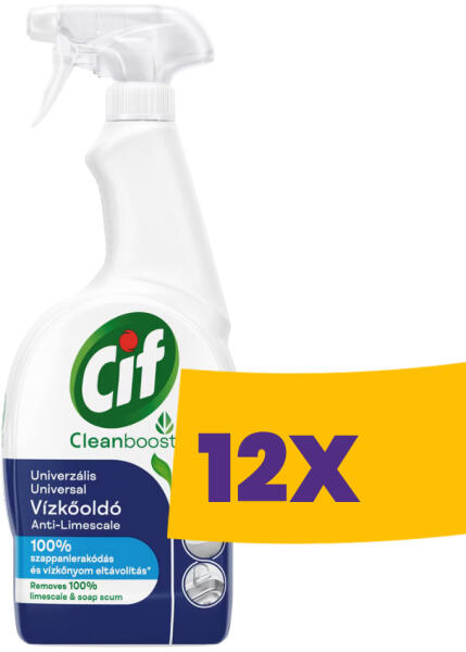 A Cif Univerzális vízkőoldó spray hatékonyan távolítja el a szappan lerakódásokat és vízkövet a különféle fürdőszobai felületekről és friss, üde illatot hagy maga után. Ints búcsút a makacs vízkőnek a Cif Univerzális Vízkőoldó spray-vel. Továbbfejlesztett forumulánk 100%-os vízkő-és szappanlerakódás mentes felületeket biztosít és könnyedén elbánik a megma