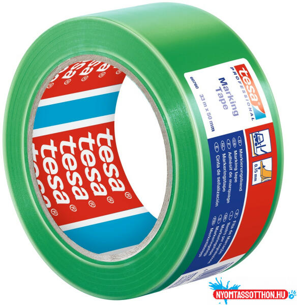 Jelölőszalag 50mmX33m Tesa zöld PVC padlójelölő ragasztószalag kaucsuk alapú ragasztóval. A ragasztószalag tökéletesen alkalmas ideiglenes és alacsony kockázatú figyelmeztető jelzések vagy veszélyzónák jelölésére és bármilyen mozgó vagy statikus tárgy megjelölésére.