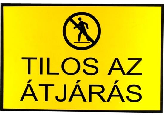 méret: 210x297mm I Fekvő, A4es méretű, sárga, átjárást tiltó műanyag tábla