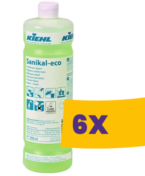 Sav- és klórmentes tisztítószer, szaniter helységek teljes tisztítására. Oldja a naponta képződött mész- és mész-szappan maradványokat, valamint az olajos és zsíros szennyeződéseket. A Sanikal-eco-val kezelt felület víz- és szennytaszító. Felhasználáskor kellemesen friss illatú. A Sanikal-eco megfelel a szerelvények gyártói által javasolt tisztítási követelmények