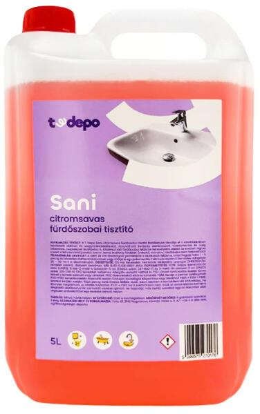 Távolítsa el a vízkövet és a szennyeződéseket hatékonyan és természetesen a T-Depo Sani citromsavas fürdőszobai tisztítóval! A termék erős vízkőoldó hatással rendelkezik, eltávolítja a vízkövet, a szappanlerakódást és a rozsdát. Termékjellemzők: Erős vízkőoldó hatás: hatékonyan eltávolítja a vízkövet a csempéről, a csaptelepekről, a zuhanyfejről és a WC