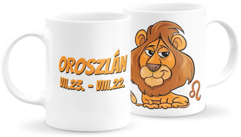Ez a nem éppen szokványos stílusban készült Oroszlán csillagjegyes bögre mosolyt fog csalni mindenki arcára. Az Oroszlánok VII. 23. és VIII. 22. között ünnepelnek, ne maradj le Te se, lepd meg vele ismerőseidet!