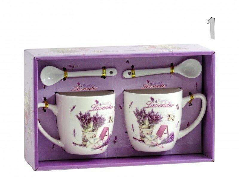 Bögre kiskanál levendulás 22db 2dl díszdobozban 2féle 01317 Díszdobozos, 2 db-os levendula mintás kerámia bögre szett, 2 db kanállal. 2 féle mintával rendelhető. Töltsd bele kedvenc teádat vagy kávédat. 2 féle típus választhatóBefoglaló méretek 22x8x14 cmAnyaga kerámia