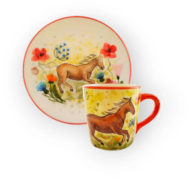 Kézzel festett bögre Termék adatai Anyaga: kerámia Szín:Színes mázalatti festék Bevonat: Károsanyag mentes, fényes máz. Készült: Égetéssel 1030 C-on Űrméret: 4 dl Tányér átmérő:19,5 cm Mosogatógépben és mikróban is használható. Termék adatai Anyaga: kerámia Szín:Színes mázalatti festék Bevonat: Károsanyag mentes, fényes máz. Készült: Égetéssel 1030 C-on Űr