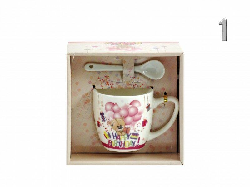 Bögre kiskanál Happy Birthday 200ml díszdobozban 03260 4féle - Ajándék bögre 4féle típus választhatóBefoglaló méretek 14x7.5x14 cmAnyaga kerámia