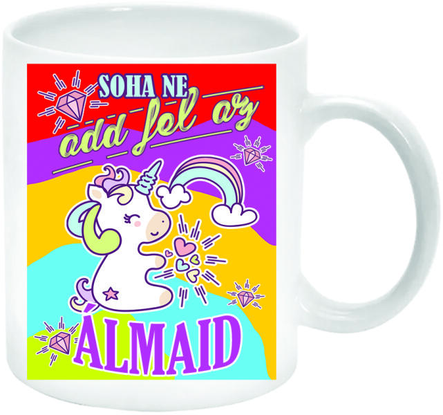 3 dl kerámia bögre. NEM KOPIK! Ez a minta csak nálunk kapható! Mosogatógépben mosható. A másik oldala feliratozható. Paraméterek: Űrtartalom 3 dl. Bögre alapszíne: Fehér (lásd fő termékképen), vagy választható más szín is a listából. Ajándékot keresel, és nincs ötleted? Nekünk nagyon sok ajándékötletünk van, többek között egy ilyen egyedi bögre, többszáz vál