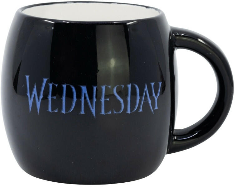 Wednesday kerekded kerámia bögre 380 ml ajándékdobozban Wednesday kerekded kerámia bögre 380 ml ajándékdobozban. A Wednesday sorozat rajongóinak készült kerámia bögre egyedi és stílusos kiegészítője lehet a reggeli kávézásnak vagy teázásnak. A minőségi anyagból készült bögre tartós és könnyen tisztítható. Egyedi mintája miatt ideális ajándék minden Wednesday r