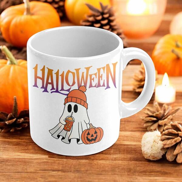 A Halloween témájú 3 dl-es kerámia bögre igazán különleges darab, amely tökéletesen visszaadja a Halloween vidám és borzongató hangulatát. Az aranyos szellem és tök mintával díszített bögre egyedi megjelenést biztosít, amit a „ Halloween felirat tesz még hangulatosabbá. Legyen szó egy forró kávéról, teáról vagy kakaóról, ez a bögre mindig jó társad lesz az ős