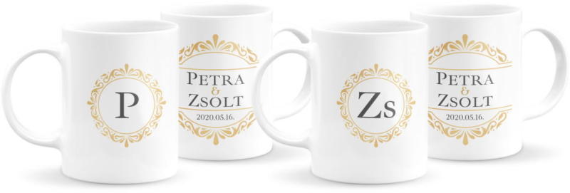 Ez a rendkívül elegáns kivitelű monogramos páros bögre tökéletes ajándék lehet eljegyzésre, esküvőre, nászajándékba, házassági évfordulóra, Valentin napra...