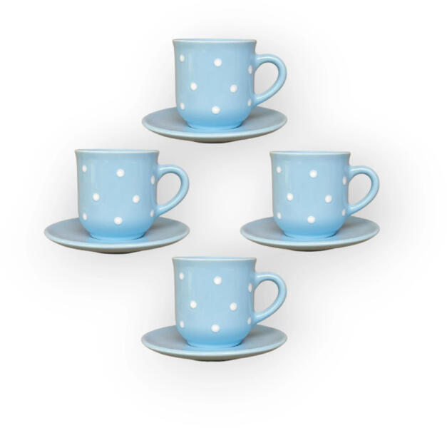 Kávés bögre és kistányér 8 db-os Anyaga: kerámia Szín: pasztel kék Bevonat: Károsanyag mentes, fényes máz. Készült: Égetéssel 1030 C-on Űrméret: 2,0 dl Mosogatógépben és mikróban is használható. Termék adatai Anyaga: kerámia Szín: pasztel kék Bevonat: Károsanyag mentes, fényes máz. Készült: Égetéssel 1030 C-on Űrméret: 2,0 dl Minden egyes darab egyedileg, kézz
