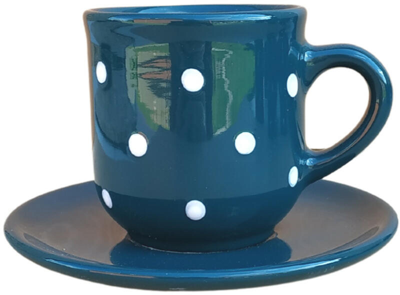 Kávés bögre kistányérral Termék adatai Bevonat: Károsanyag mentes, fényes máz. Készült: Égetéssel 1030 C-on Űrméret: 2,0 dl Tányér átmérő:13,5 cm Mosogatógépben és mikróban is használható. Termék adatai Anyaga: kerámia Szín: sötét zöld Bevonat: Károsanyag mentes, fényes máz. Készült: Égetéssel 1030 C-on Minden egyes darab egyedileg, kézzel készült és kéz