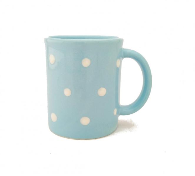 Pasztel kék alapon fehér pöttyös Standard közepes bögre Termék adatai Anyaga: kerámia Szín: pasztel kék Bevonat: Károsanyag mentes, fényes máz. Készült: Égetéssel 1030 C-on Űrméret: 3,0 dl Mosogatógépben és mikróban is használható. Termék adatai Anyaga: kerámia Szín: pasztel kék Bevonat: Károsanyag mentes, fényes máz. Készült: Égetéssel 1030 C-on Űrméret: 3,0