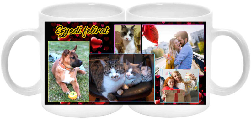 3 dl fehér kerámia bögre a saját fotóddal. Akár több fotót is küldhetsz. Ha több képet küldesz, a fotókat elrendezzük a bögre mindkét oldalán. Ha csak 1 fotót küldesz, nyilván egy fénykép lesz a bögrén, felirattal vagy anélkül. A fényképe(ke)t küldd el a rendelést követően az email címünkre. Akár 2-3 fényképet is küldhetsz, és 2-3 mondatot is feliratozhatsz.
