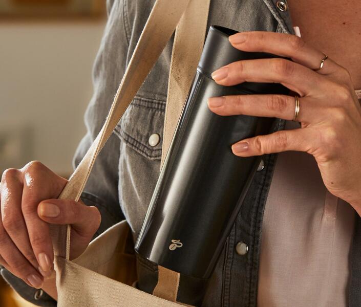 Többször használatos bögre, duplafalú nemesacélból