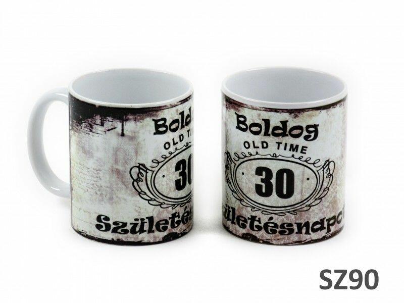 Bögre Boldog 30. Születésnapot Old Time 3dl SZ90 - Szülinapos bögre Praktikus ajándék családtagoknak, barátoknak, születésnapra egy szép és hasznos ajándék. A bögréink fényes felületűek és élénk színűek. Kézzel és mosogató gépben is mosható. Űrtartalma 3dlBefogó méretei 12 x 8 x 9,5 cmSúlya 0.35 kgAnyaga kerámia