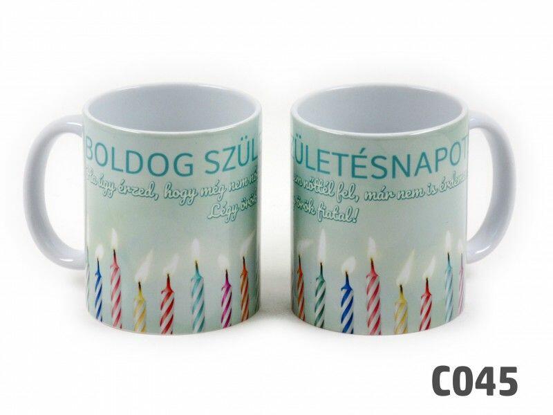 Bögre Boldog Születésnapot gyertyás 3dl C045 04366 - Szülinapos bögre A bögréink fényes felületűek és élénk színűek. Kézzel és mosogató gépben is mosható. Űrtartalma 3dlBefogó méretei 8 cm x 9,5 cmSúlya 0.35 kgAnyaga kerámia