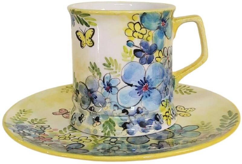 Termék adatai Kékek virágos bögre és reggeliző tányér Anyaga: kerámia Szín:Máz alatti festék, 1030C-on égetett mázzal bevonva. Bögre:4dl Tányér átmérő:19,5 cm Bevonat: Károsanyag mentes, fényes máz. Készült: Égetéssel 1030 C-on Termék adatai Anyaga: kerámia Szín:Máz alatti festék, 1030C-on égetett mázzal bevonva. 4dl Bevonat: Károsanyag mentes, fényes máz. Kés