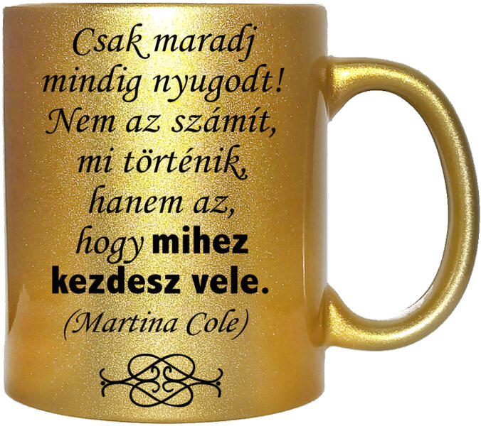 3 dl kerámia bögre. NEM KOPIK! Ez a minta csak nálunk kapható! A fehér bögre mosogatógépben mosható, az arany és ezüstnél a kézi mosogatás javasolt. A RAJTA LÉVŐ FELIRATOT VÁLTOZTATHATOD, DE AKÁR A MÁSIK OLDALÁRA IS KÉRHETSZ TOVÁBBI FELIRATOZÁST (Megjegyzésbe írd be ha egyedi feliratot kérsz). Mivel a bögre másik oldala üres, akár 2-3 mondatot is feliratozhatsz. A bö
