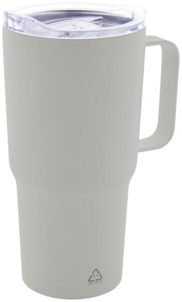 Duplafalú, újrahasznosított rozsdamentes acél vákuumszigetelt thermo bögre PS műanyag ivófedéllel, 600 ml.