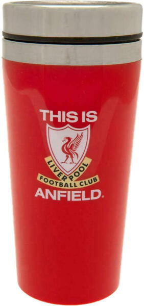Ez a Liverpool termosz utazó bögre tökéletes választás minden futballrajongó számára. Kiváló minőségű műanyagból készült, és a dupla falú rozsdamentes acél termikus kialakításának köszönhetően hosszabb ideig képes megőrizni az ital hőmérsékletét. Az ikonikus LFC dizájn, az élénk piros szín és az ezüst peremes csavaros felső fedél csúsztatható záró ivón