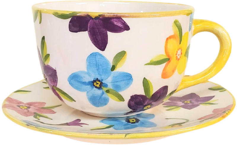 Termék adatai Árvácska jumbó bögre és reggeliző tányér Anyaga: kerámia Szín:Máz alatti festék, 1030C-on égetett mázzal bevonva. 6,5d Tányér átmérője:19,5cm Bevonat: Károsanyag mentes, fényes máz. Készült: Égetéssel 1030 C-on Termék adatai Anyaga: kerámia Szín:Máz alatti festék, 1030C-on égetett mázzal bevonva. 6,5dl Bevonat: Károsanyag mentes, fényes máz. Kész