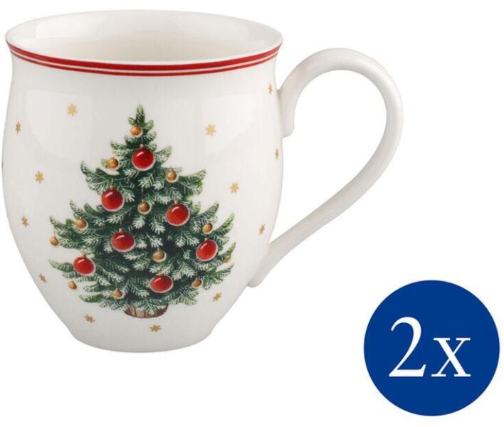 Karácsonyfa mintás bögre szett 2 fő számára Szemkápráztat ó bögre szett a Villeroy & Boch Toy's Delight készletéből. Ki mondta, hogy az ajándék bögrék kora leáldozott? Minden bizonnyal még nem látta ezeket a darabokat. A szerethető, csupor formájú kerekded bögrék karácsonyfa mintával igazán kedves és vonzó ajándékok. A maga 340ml-es űrtartalmával egy ilyen bö