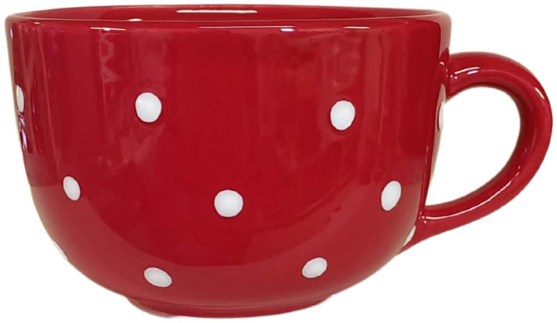 Meggy alapon fehér pöttyös Jumbo bögre Termék adatai Anyaga: kerámia Szín: meggy Bevonat: Károsanyag mentes, fényes máz. Készült: Égetéssel 1030 C-on Űrméret: 6,5 dl Mosogatógépben és mikróban is használható. Termék adatai Anyaga: kerámia Szín: meggy Bevonat: Károsanyag mentes, fényes máz. Készült: Égetéssel 1030 C-on Űrméret: 6,5 dl Minden egyes darab egyedileg,