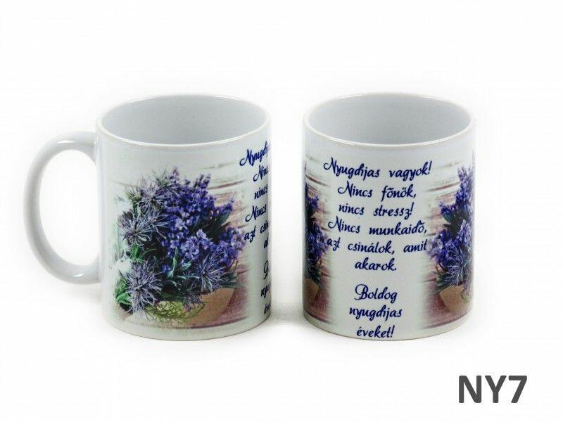 Bögre Nyugdíjas vagyok levendulás 3dl NY7 - Ajándék bögre Praktikus ajándék családtagoknak, barátoknak, születésnapra, névnapra vagy bármilyen alkalomra egy szép és hasznos ajándék. A bögréink fényes felületűek és élénk színűek. Kézzel és mosogató gépben is mosható. Űrtartalma 3dlBefogó méretei 12 x 8 x 9,5 cmSúlya 0.35 kgAnyaga kerámia
