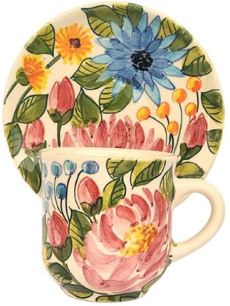 Tegye különlegessé napi csésze teáját, vagy kávéját egy romantikus hortenzia bögrével. Termék adatai Anyaga: kerámia Szín:Máz alatti festék, 1030C-on égetett mázzal bevonva. 2dl KIstányér átmérő:13,5cm Bevonat: Károsanyag mentes, fényes máz. Készült: Égetéssel 1030 C-on Minden egyes darab egyedileg, kézzel készült és kézzel festett, emiatt előfordulhatnak aprób