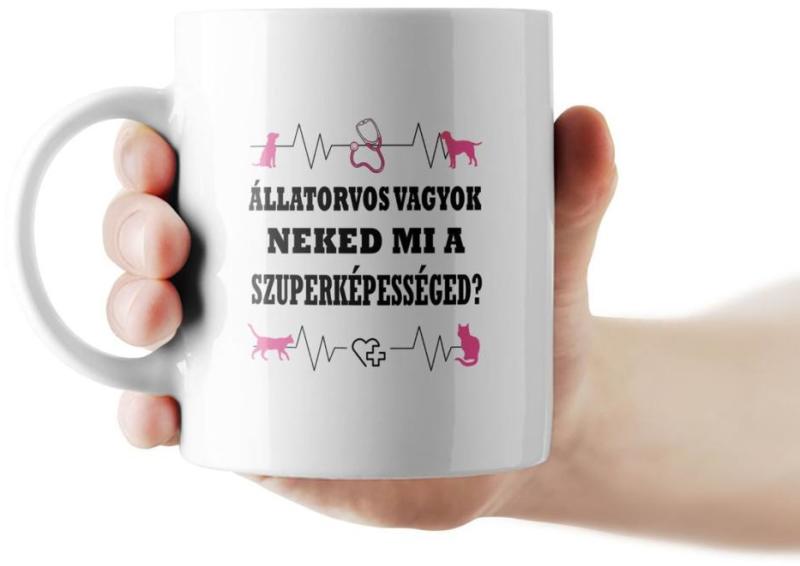 Állatorvos vagyok. Neked mi a szuperképességed? feliratos bögre. Állatorvos vagyok. Neked mi a szuperképességed? feliratos bögre. Anyag és méret: kerámia, 3dl
