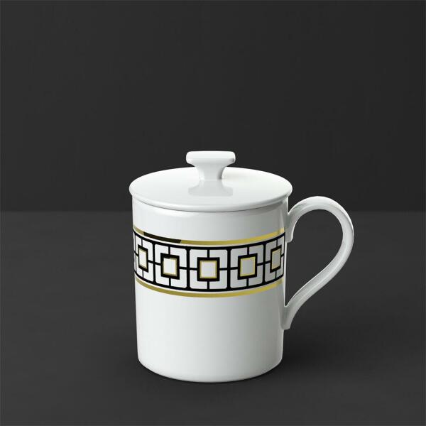 Aranyozott bögre fedővel, hogy luxusban teljen az énidő A MetroChic Gifts ajándékkollekció egy igazán különleges készlete a Villeroy & Bochnak. A különlegesen ellenálló csontporcelánból készült készlet minden darabját a fehér, fekete és az arany színek díszítik, geometrikus mintázattal. Az art deco stílusú MetroChic Gifts a MetroChic étkészlet nagyszerű kiegész