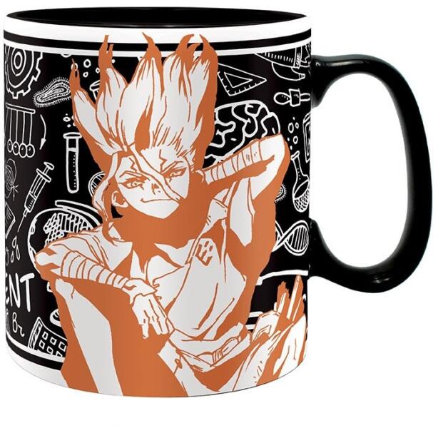 Nagy bögre (460 ml) a népszerű anime- és mangasorozat, a Dr. Stone motívumával díszítve. A bögre díszdobozba csomagolva, mikrohullámú sütőben és mosogatógépben is biztonságosan használható. Térfogat: cca 460 mlAnyag: kerámia