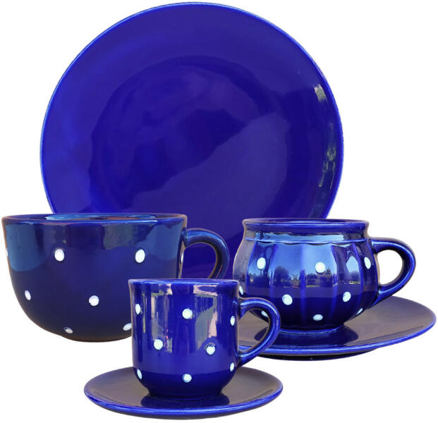 JReggeliző nagy szett 6 részes Bevonat: Károsanyag mentes, fényes máz. Készült: Égetéssel 1030 C-on Űrméret: 4 dl, 2dl, 6,5 dl Tányér átmérő:19,5 cm Mosogatógépben és mikróban is használható. Termék adatai Anyaga: kerámia Szín: sötét kék Bevonat: Károsanyag mentes, fényes máz. Készült: Égetéssel 1030 C-on Minden egyes darab egyedileg, kézzel készült és kézze